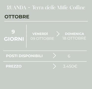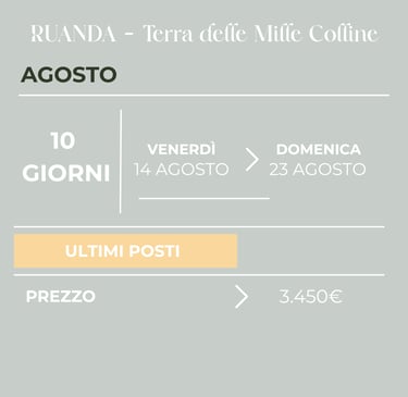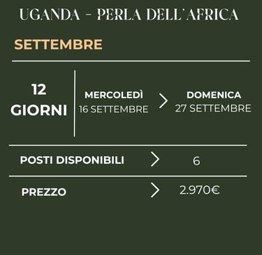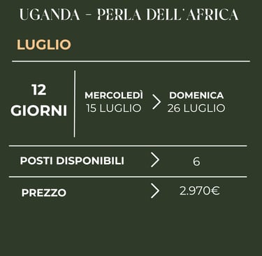 Il prezzo include tutte le attività e le visite menzionate nell’itinerario, nonché i permessi necessari per il trekking con i gorilla nel Parco Nazionale di Bwindi (del valore di 800 €).
