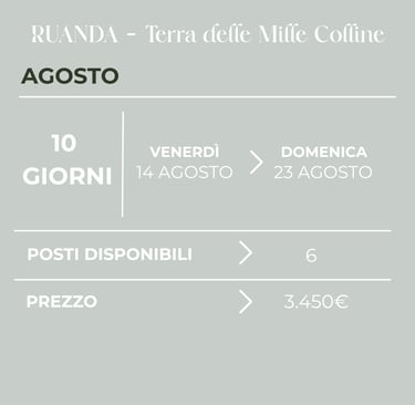 Il prezzo include tutte le attività e le visite menzionate nell’itinerario, nonché i permessi necessari per il trekking con i gorilla nel Parco Nazionale di Bwindi (del valore di 800 €).